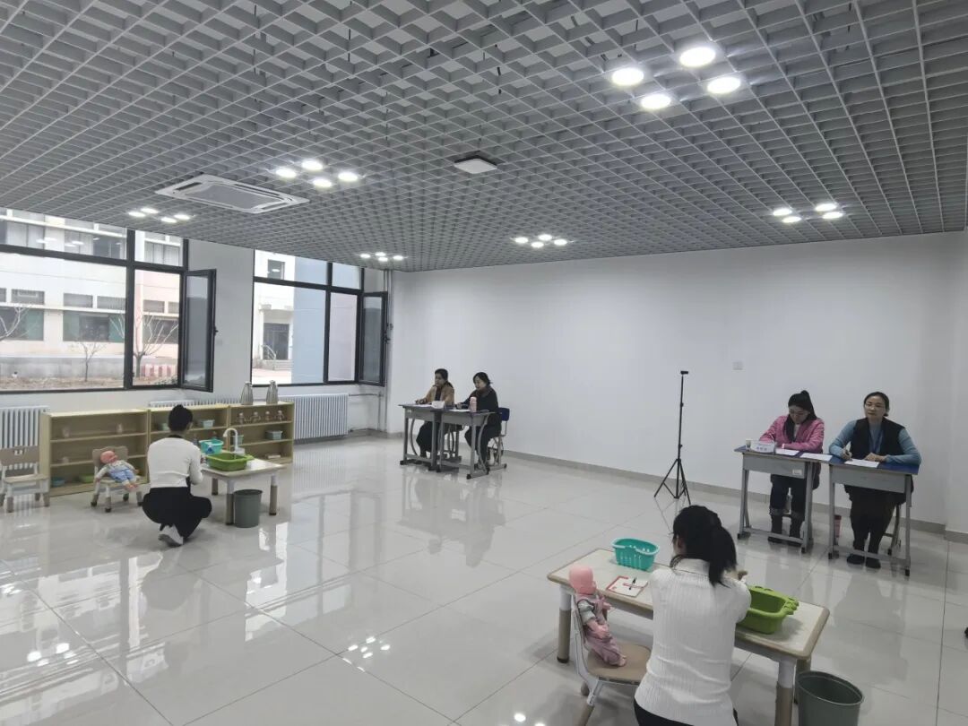 在学前教育系“七步洗手法”项目考核现场,教师以游戏形式教给幼儿“七步洗手”,并融入节约用水、讲究卫生、热爱生活等思政内容。